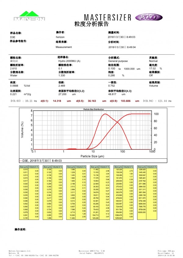 受硅碳棒傳統工藝生產過程污染的影響,傳統工藝發展已嚴重受到制約;低成本、高效率、沒污染的硅碳棒新工藝的出現,傳統工藝逐漸退出市場。我公司生產的D3E綠碳化硅微粉,硅碳棒新工藝專用微粉,以其純度高、粒度分布合理、粒形好、流動性好、穩定性強等特點,深受客戶好評。
